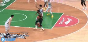 曾凡博起飞欲扣 付豪凶狠犯规将其拽倒 裁判回看后普通犯规